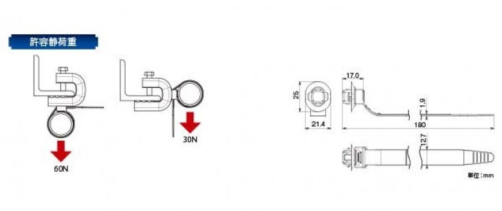 幅広いサイズのPF管を簡単・確実に固定。●各種電路支持金具で多く採用されているφ14mm穴に対応しているため、様々な金具に使用可能です。