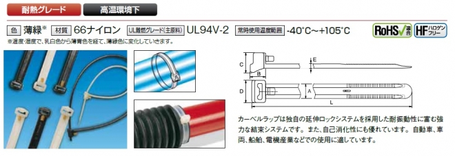 カーベルラップ(インシュロック・耐熱グレード・薄緑)