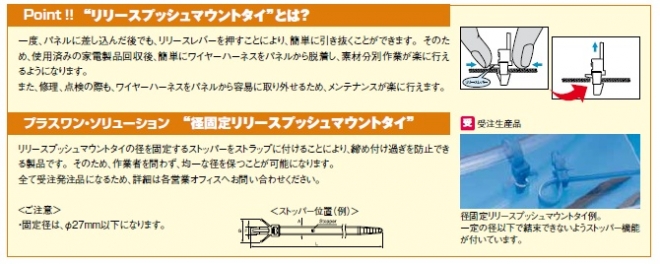 パネルに差し込んだ後も簡単に引き抜きが可能な家電リサイクル法対応製品材質:66ナイロン