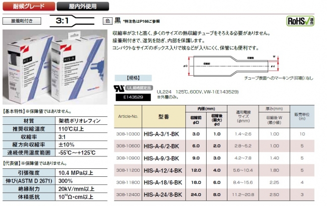 接着剤付き/薄肉/柔軟/難燃性/高収縮率(化粧箱入り)