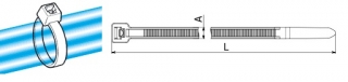| 型番 | 結束径Φ(㎜) | 全長L(㎜) | 幅A(㎜) | ループ引張強度(最小値)N(Kgf) | 販売単位 (本) |